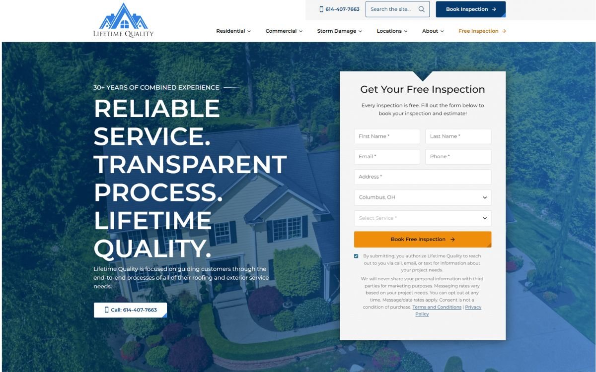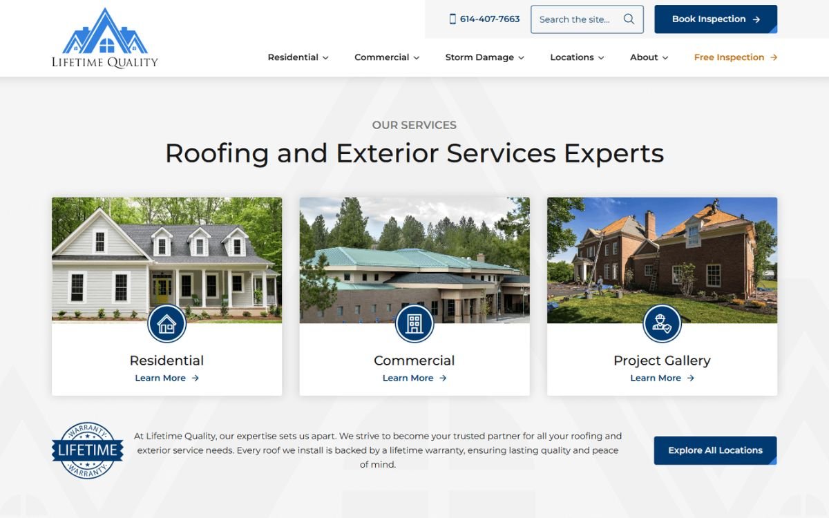 For Lifetime Quality Roofing, the website was developed with a strategic content structure and design that emphasized: