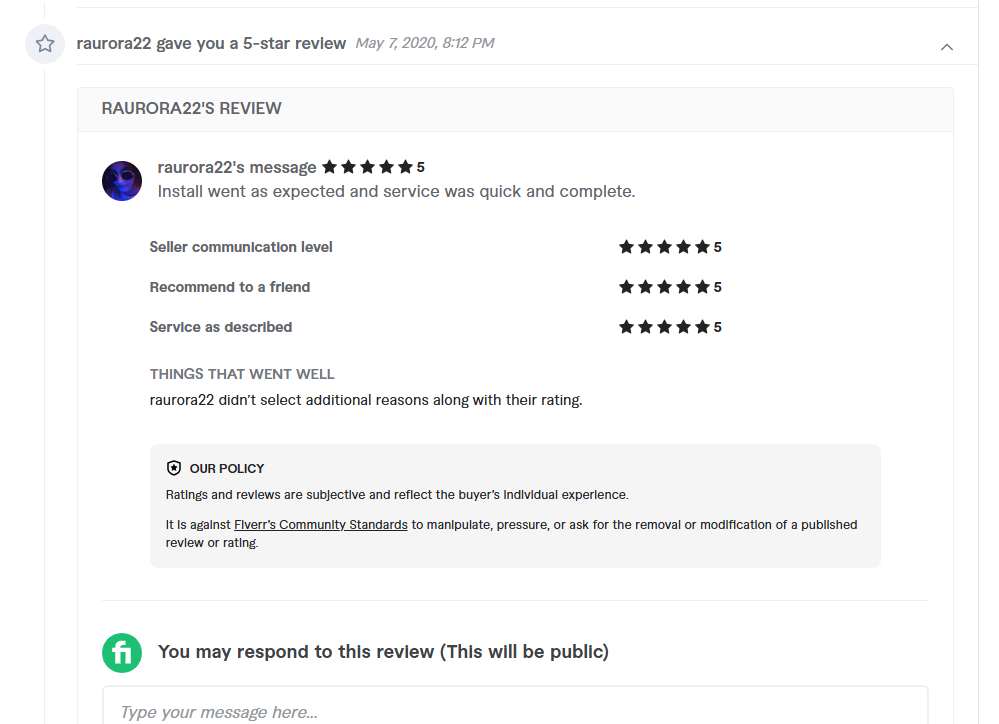 Install went as expected and service was quick and complete.