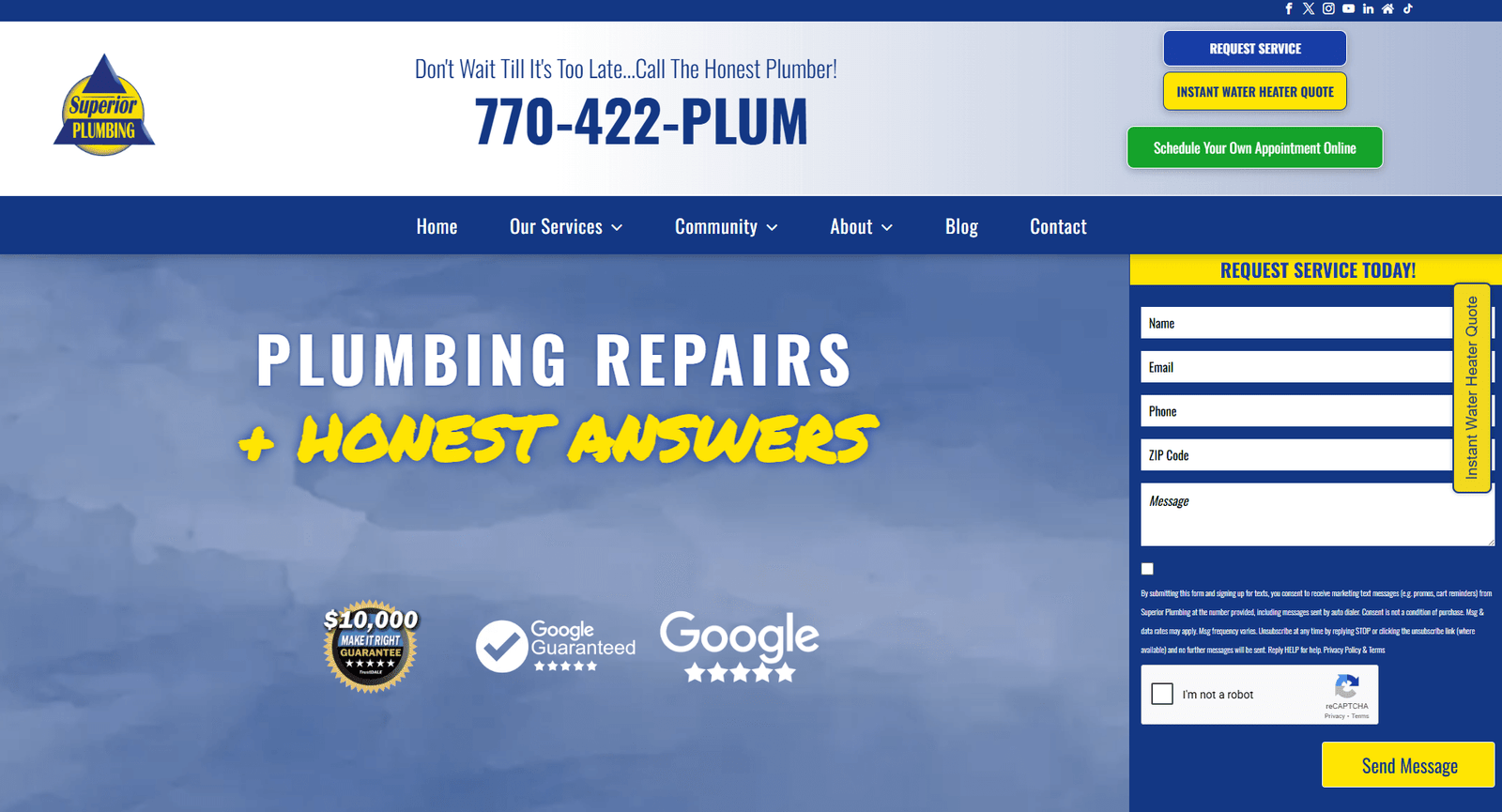 Displayed the benefits of choosing Superior Plumbing, including prompt response times and skilled technicians.